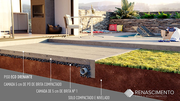 Os pavimentos permeáveis Renascimento são projetados com agregados especiais que criam espaços entre o concreto, permitindo que a água da chuva flua e infiltre no subsolo.